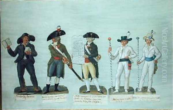 A Newspaper Seller a Citizen Ready to Fight a Citizen Carrying the Declaration of the Rights of Man and Two Bargemen