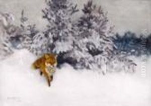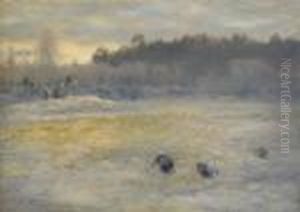 Vinterlandskap Med Gass. Signerad Bruno Liljefors Och Daterad 1927