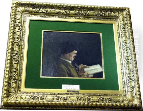 Duken Uppklistrad Pa Panna. Lasande Man.