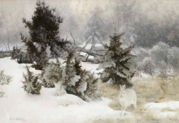 Hare I Vinterlandskap Oil Painting by Bruno Andreas Liljefors