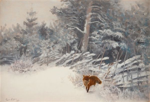 Winter Landscape With Fox Oil Painting by Bruno Andreas Liljefors