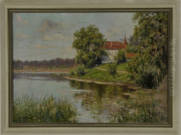 Uferlandschaft Mit Kleiner Pfarrkirche