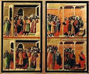 Bring the timeless beauty of Buoninsegna Duccio di's Maesta eleven scenes from the Passion into your home with a handmade oil painting reproduction. Carefully recreated on canvas by skilled artists using traditional techniques, this piece captures the delicate brushwork, subtle light, and vibrant color of the original masterpiece. With museum-level quality and rich texture, it brings elegance and artistic depth to any space. Enjoy free shipping and make this masterpiece a part of your personal collection.