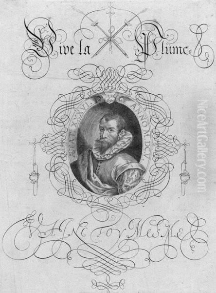 Selbstbildnis Des Kunstlers In Kalligraphischer Umrahmung