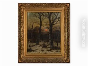 Abendliche Winterlandschaft Mit Holzfuhrwerk