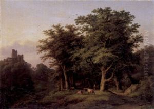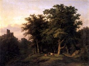 Bewaldete Landschaft Mit Landvolk Und Blick Auf Schloss Bentheim?