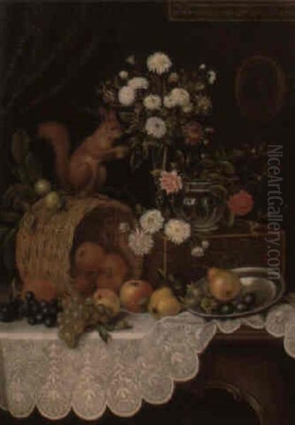 Still Life With Flowers, Fruit, And Squirrel