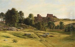 Landschaft Mit Baumbestandenen Weiher Und Burg Auf Einem Hugel