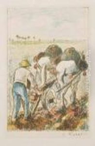 Gardener Standing by a Haystack, Overcast Sky, Eragny