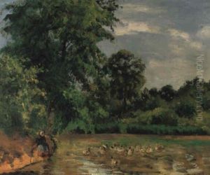 Ein Paar Flusslandschaften (pendants) A)weite Landschaft Mitkleinem Fluss Bei Gewitterstimmung B)la Varenne