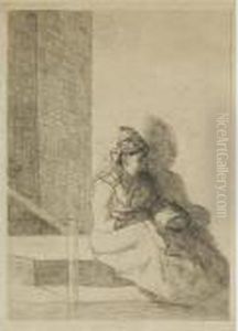 Femme Etendant Du Linge (etude)