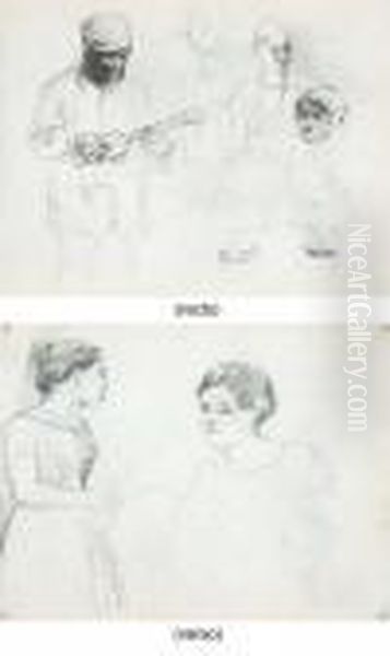 Bring the timeless beauty of Camille Pissarro's A Man Playing A Small Guitar With Studies Of A Woman And A Boy,bust-length (recto); A Standing Woman In Profile To The Right,three-quarter-length, And The Same Woman, Bust-length (recto) into your home with a handmade oil painting reproduction. Carefully recreated on canvas by skilled artists using traditional techniques, this piece captures the delicate brushwork, subtle light, and vibrant color of the original masterpiece. With museum-level quality and rich texture, it brings elegance and artistic depth to any space. Enjoy free shipping and make this masterpiece a part of your personal collection.