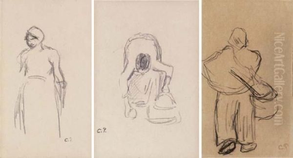 Bring the timeless beauty of Camille Pissarro's Etudes Des Figures: Femme Debout; Femme Au Travail; Femme Aveccorbeille into your home with a handmade oil painting reproduction. Carefully recreated on canvas by skilled artists using traditional techniques, this piece captures the delicate brushwork, subtle light, and vibrant color of the original masterpiece. With museum-level quality and rich texture, it brings elegance and artistic depth to any space. Enjoy free shipping and make this masterpiece a part of your personal collection.