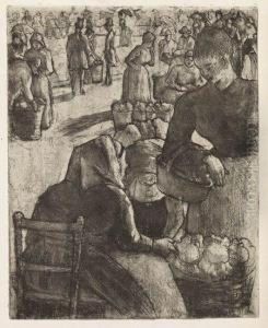 Marche Aux Legumes, A Pointoise Oil Painting by Camille Pissarro