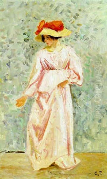 Portrait De Jeanne En Robe Rose Oil Painting by Camille Pissarro