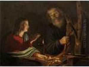 A Kitchen Still Life With A Servant Boy Holding A Cask Of Wine Beside A Table Laden With Fruit, Vegetables And Fish