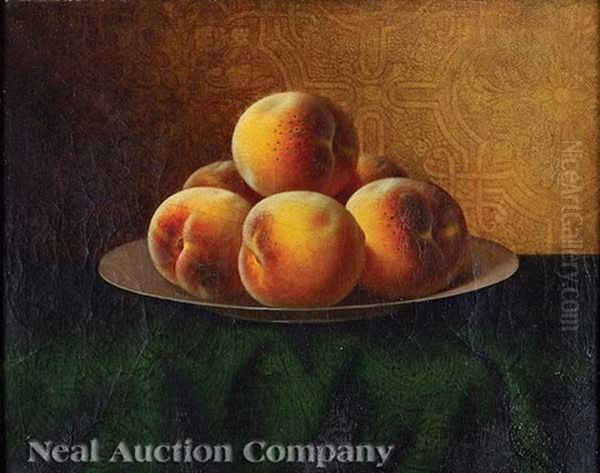Plate Of Peaches Against A Renaissance Revival Wall-paper