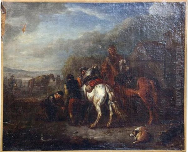 Halte De Cavaliers Oil Painting by Carel van Falens or Valens