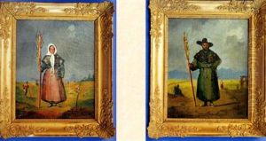Un Cavalier Demandant Son Chemin A Des Pelerins De Saint Jacques