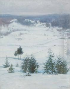Varlandskap. Signerad Och Daterad -95. Duk, 31x45. Litet Skrapmarke