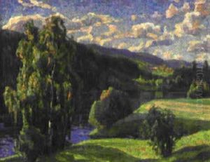 Norrlandskt Alvlandskap Oil Painting by Carl (August) Johansson