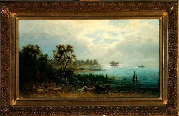 Carl August Sommer: An Evening Scenery From The Hudson River. Signed C. A. Sommer