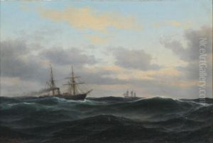 Danish sailing ships at sea. 1884.
