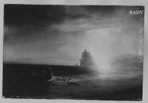 Sudliche Meeresbucht bei Mondschein mit Boot und Staffage