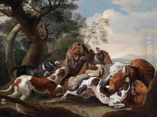 Bear Hunt Oil Painting by Carl Borromaus Andreas Ruthart