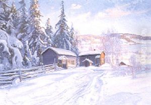 Norrlandskt Landskap Med Gard - Solig Vinterdag