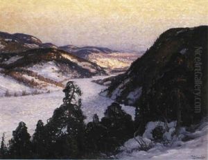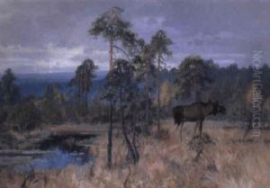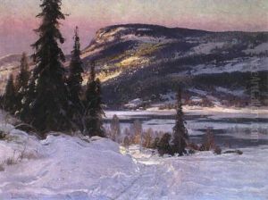 Norrlandskt Landskap Med Sjo, Solnedgangsstamning