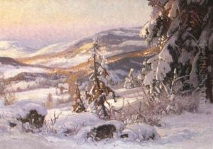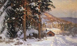Vinterlandskkap Med Rod Stuga, Eftermiddagssol