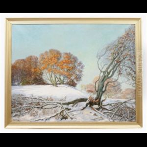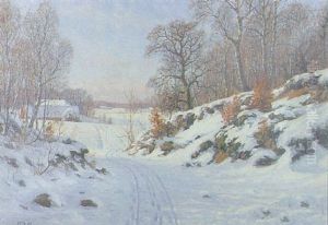 Solbelyst Vinterlandskap Oil Painting by Carl Brandt