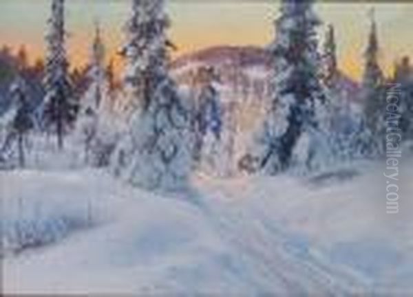 Vinterlandskap Oil Painting by Carl Brandt