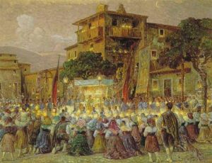 Landsbygade Med Figentrae Og Folkeliv, Antagelig Fra Gudhjem