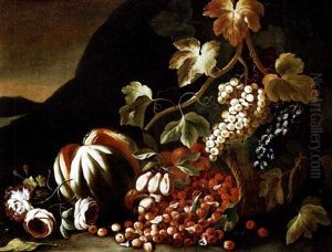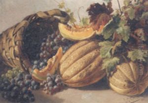 Natura Morta Con Cesto D'uva, Melone E Rami Di Rose