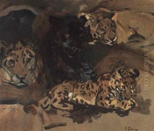 "lowe Beim Beuteverzehr" Unten Links Monogrammiert: C. F.