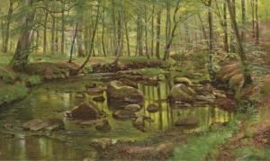 A Lake Side View. Signed C.f. Aagaard. Indistinctly Dated