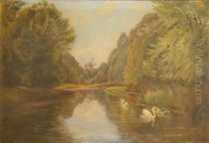 Forest Lake With Floating Swan A Beautiful Spring Day
