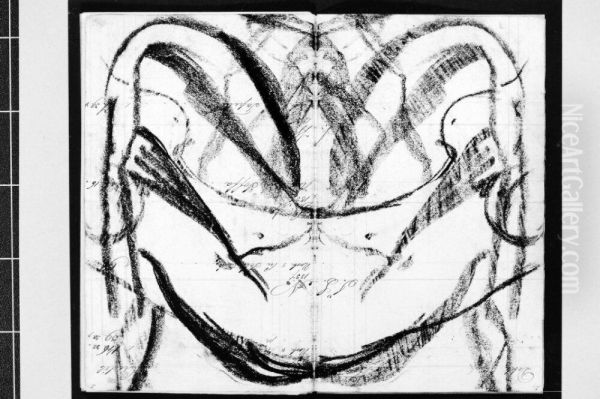 Huvudboken, nio teckningar forestallande detaljer av staende och liggande kvinnor, torsos samt i ett landskap och ett trad Oil Painting by Carl Fredrik Hill