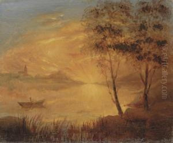 Skanskt Landskap Om Aftonen Strax Efter Solens Nedgang (eveninglandscape After Sunset, Skane)