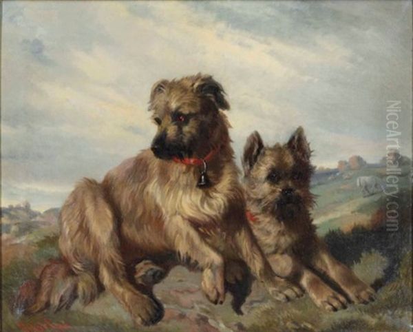 Two Cairn Terriers In A Landscape