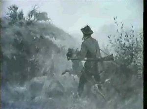 A Pointing Dog, in the Background a Hunter at the Edge of the Woods