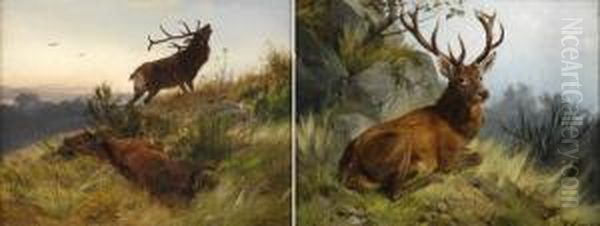 Zwei Gemalde. Nach Dem Kampf. Kapitaler Hirsch.