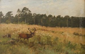 Hirsch Und Hirschkuh Auf Der Lichtung.