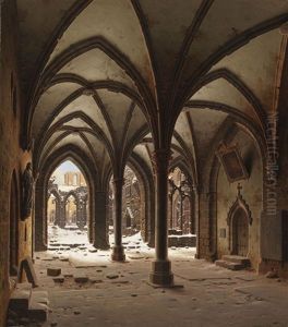 Die Ruine Des Klosters Walkenried Im Winter Oil Painting by Carl Georg Adolph Hasenpflug