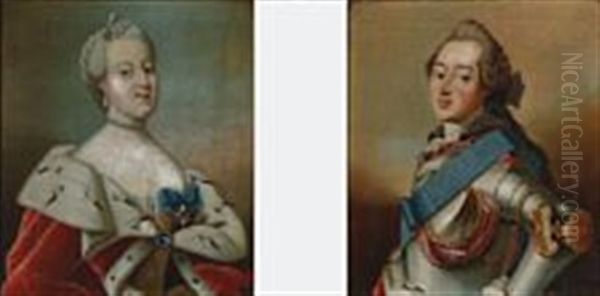 A Pair Of Portraits Of King Frederik V And Queen Louise