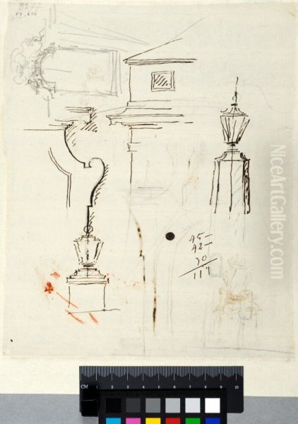 Bring the timeless beauty of Carl Harleman's Partial Elevation of Facade with a Cornice, Two Studies for Lanterns, Two Window Surrounds into your home with a handmade oil painting reproduction. Carefully recreated on canvas by skilled artists using traditional techniques, this piece captures the delicate brushwork, subtle light, and vibrant color of the original masterpiece. With museum-level quality and rich texture, it brings elegance and artistic depth to any space. Enjoy free shipping and make this masterpiece a part of your personal collection.