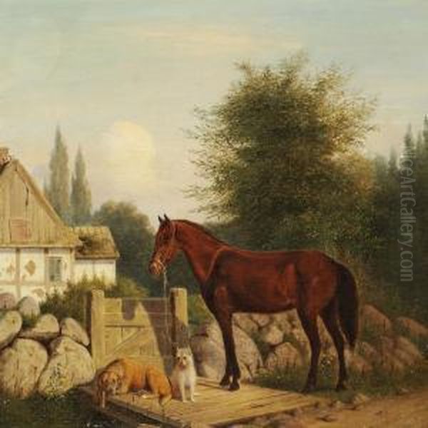 Bring the timeless beauty of Carl Henrik Bogh's A Horse And Two Dogs At A Gate To A Half-timbered House into your home with a handmade oil painting reproduction. Carefully recreated on canvas by skilled artists using traditional techniques, this piece captures the delicate brushwork, subtle light, and vibrant color of the original masterpiece. With museum-level quality and rich texture, it brings elegance and artistic depth to any space. Enjoy free shipping and make this masterpiece a part of your personal collection.