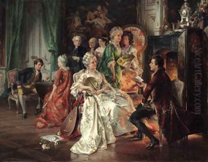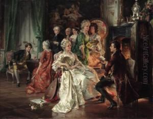 Bring the timeless beauty of Carl Herpfer's Interieurszene Mit Tanzender Gesellschaft into your home with a handmade oil painting reproduction. Carefully recreated on canvas by skilled artists using traditional techniques, this piece captures the delicate brushwork, subtle light, and vibrant color of the original masterpiece. With museum-level quality and rich texture, it brings elegance and artistic depth to any space. Enjoy free shipping and make this masterpiece a part of your personal collection.
